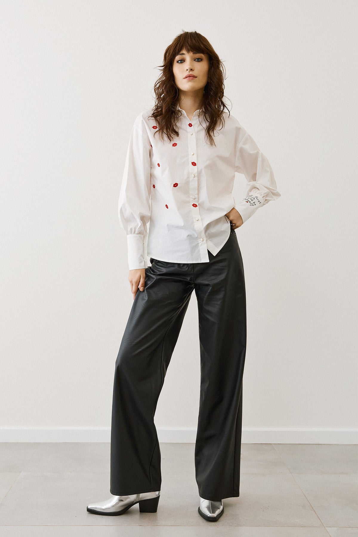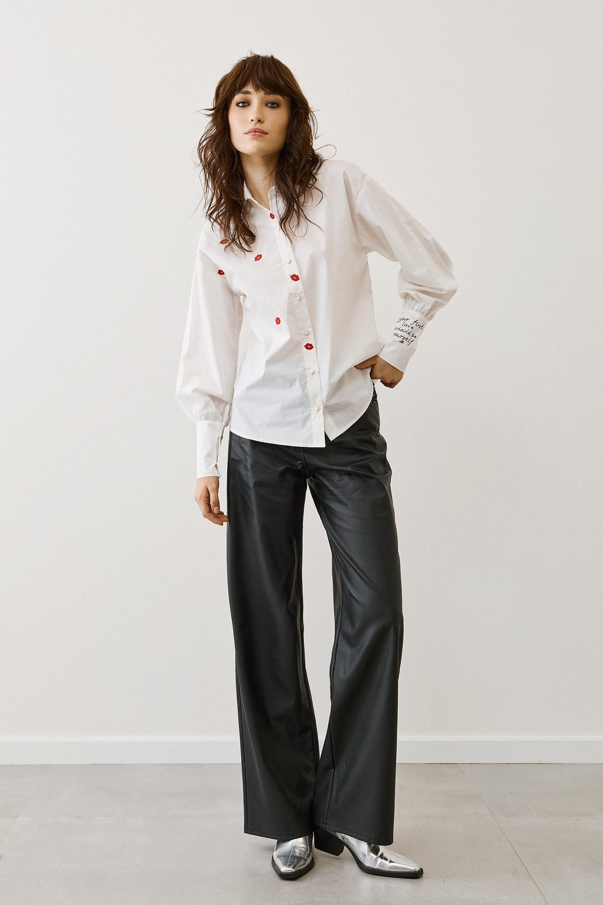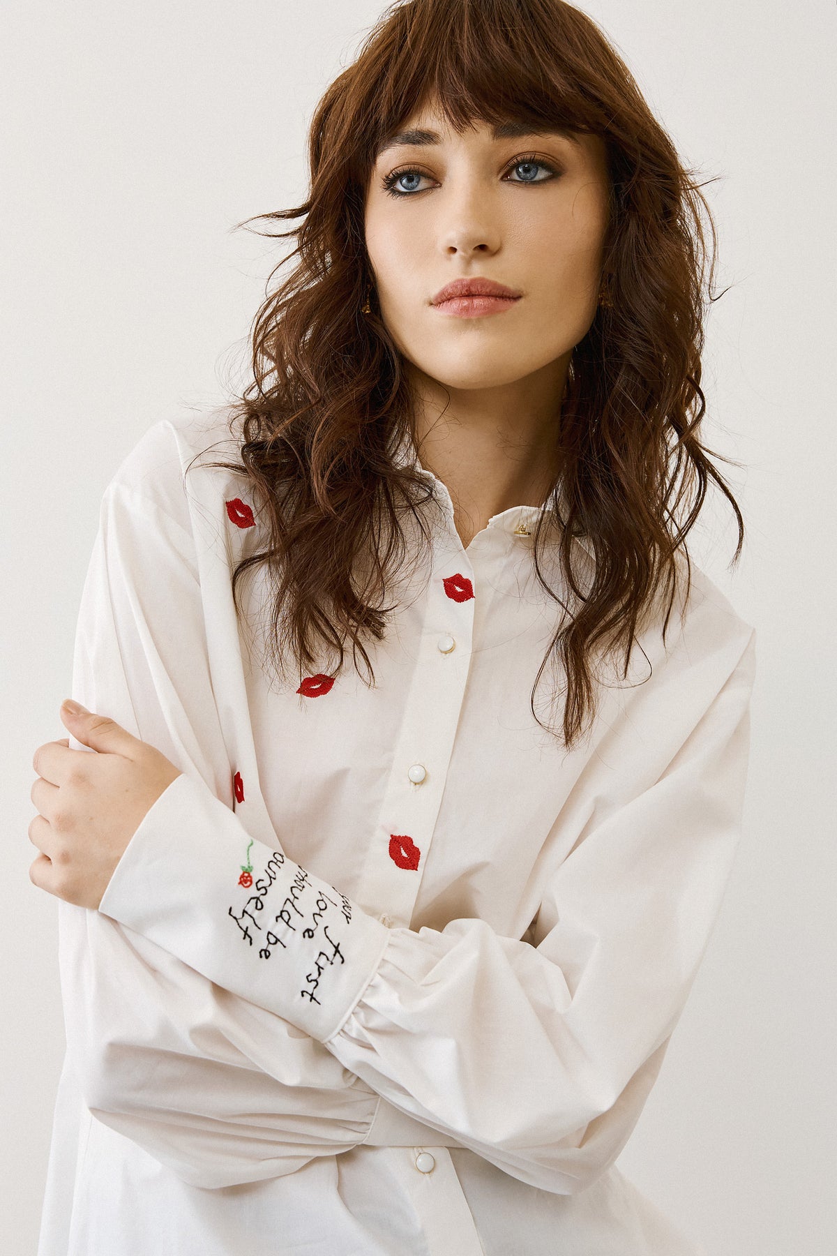 Πουκάμισο με κεντήματα "Lips & Merci" Figaro Fashion