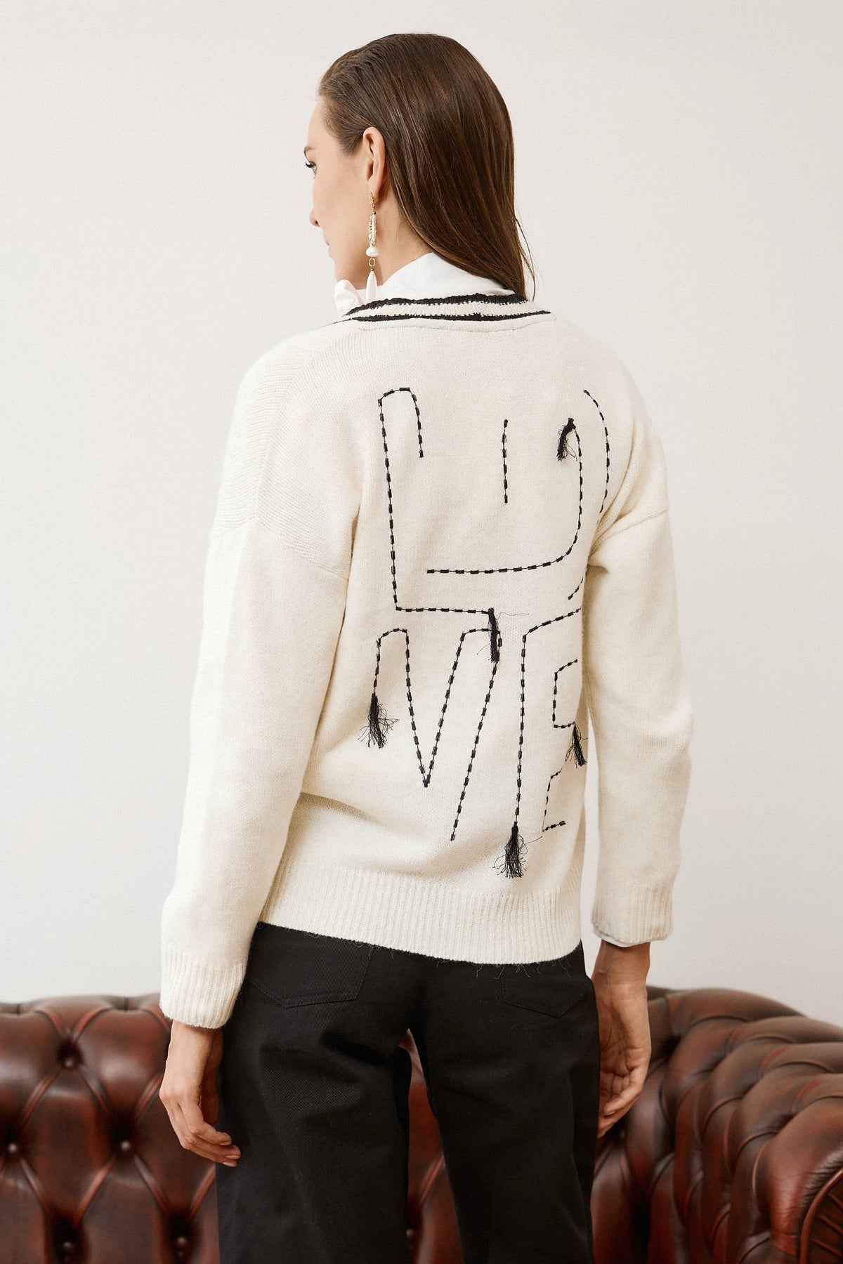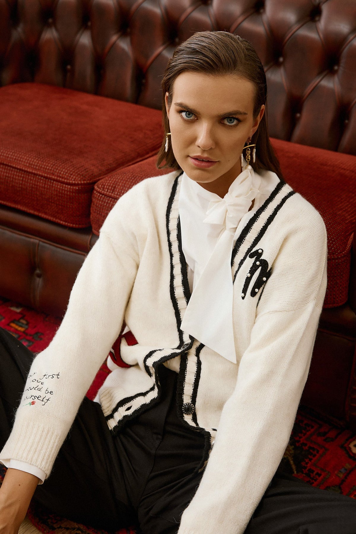 Πλεκτή ζακέτα, με oversized γραμμή και κεντημένες λεπτομέρειες. Αποτελεί ιδανική επιλογή για ζεστά και στιλάτα all-day looks με άνεση.