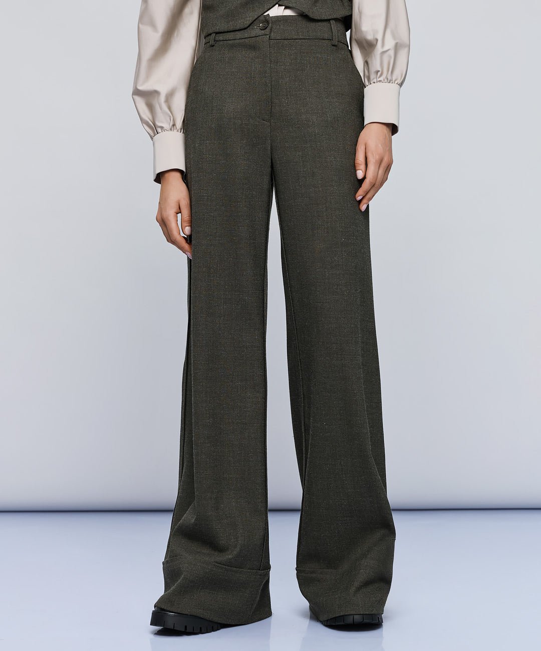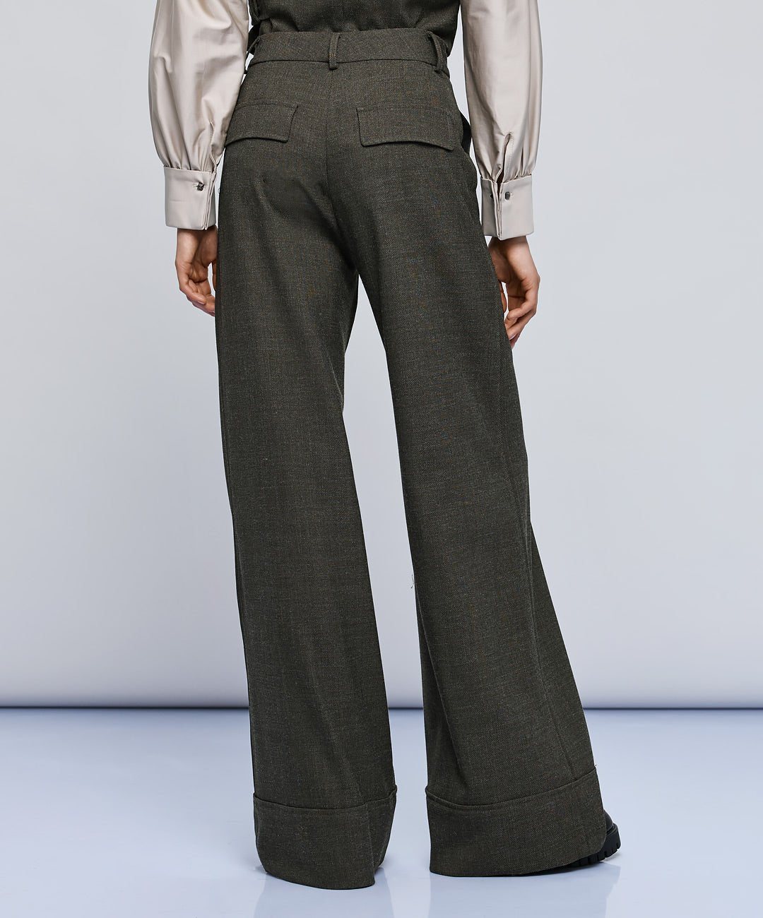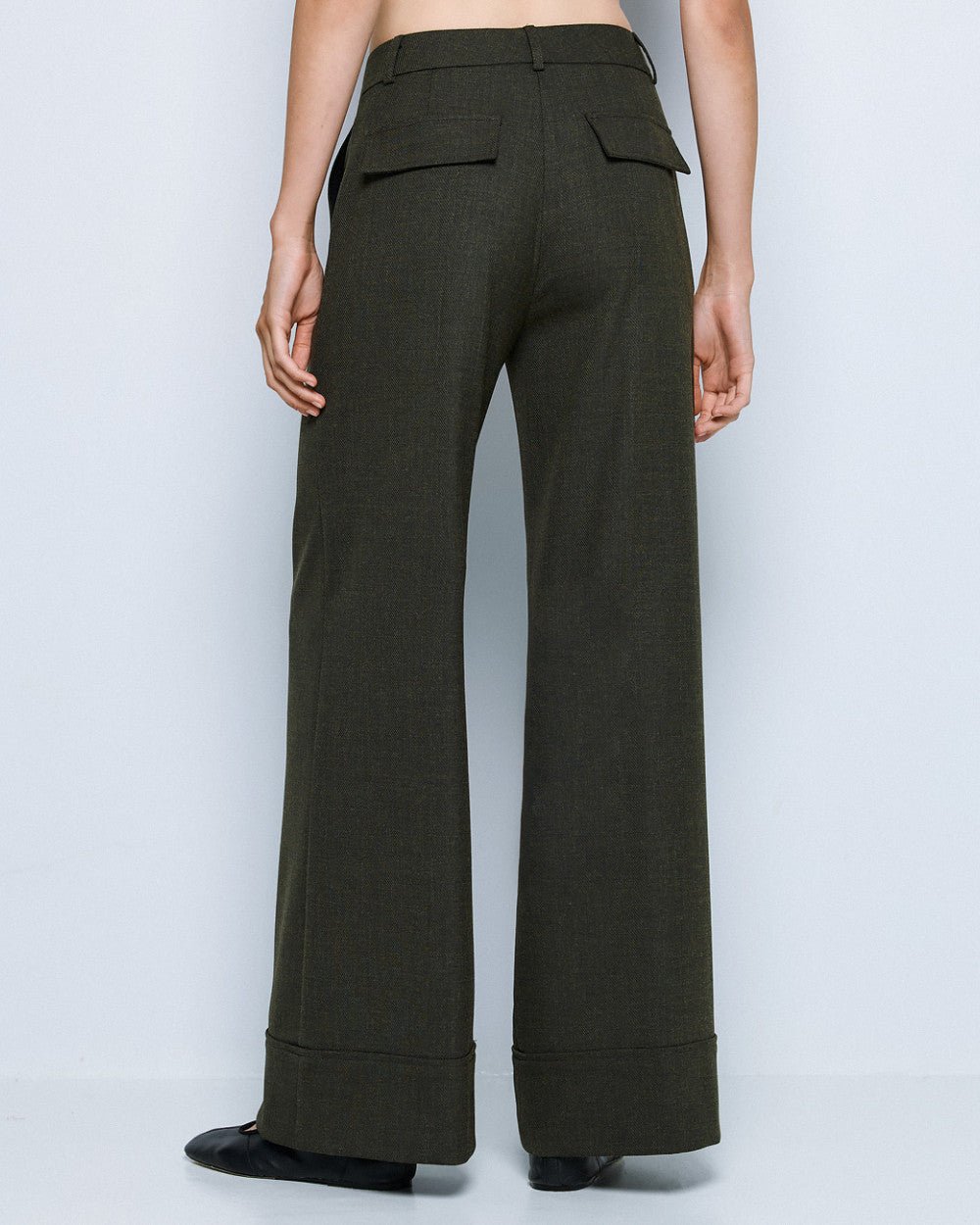 Φαρδύ ψηλόμεσο παντελόνι με ρεβέρ. Διαθέτει τσέπες στο πλάι και διακοσμητικές τσέπες με καπάκι πίσω. Συνδυάστε με το αντίστοιχο σακάκι από τη συλλογή μας για ξεχωριστές εμφανίσεις.