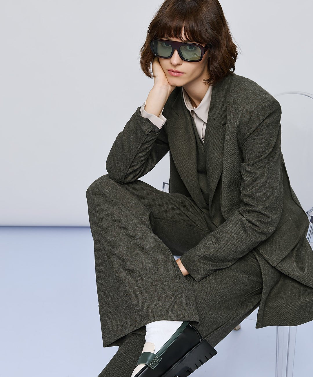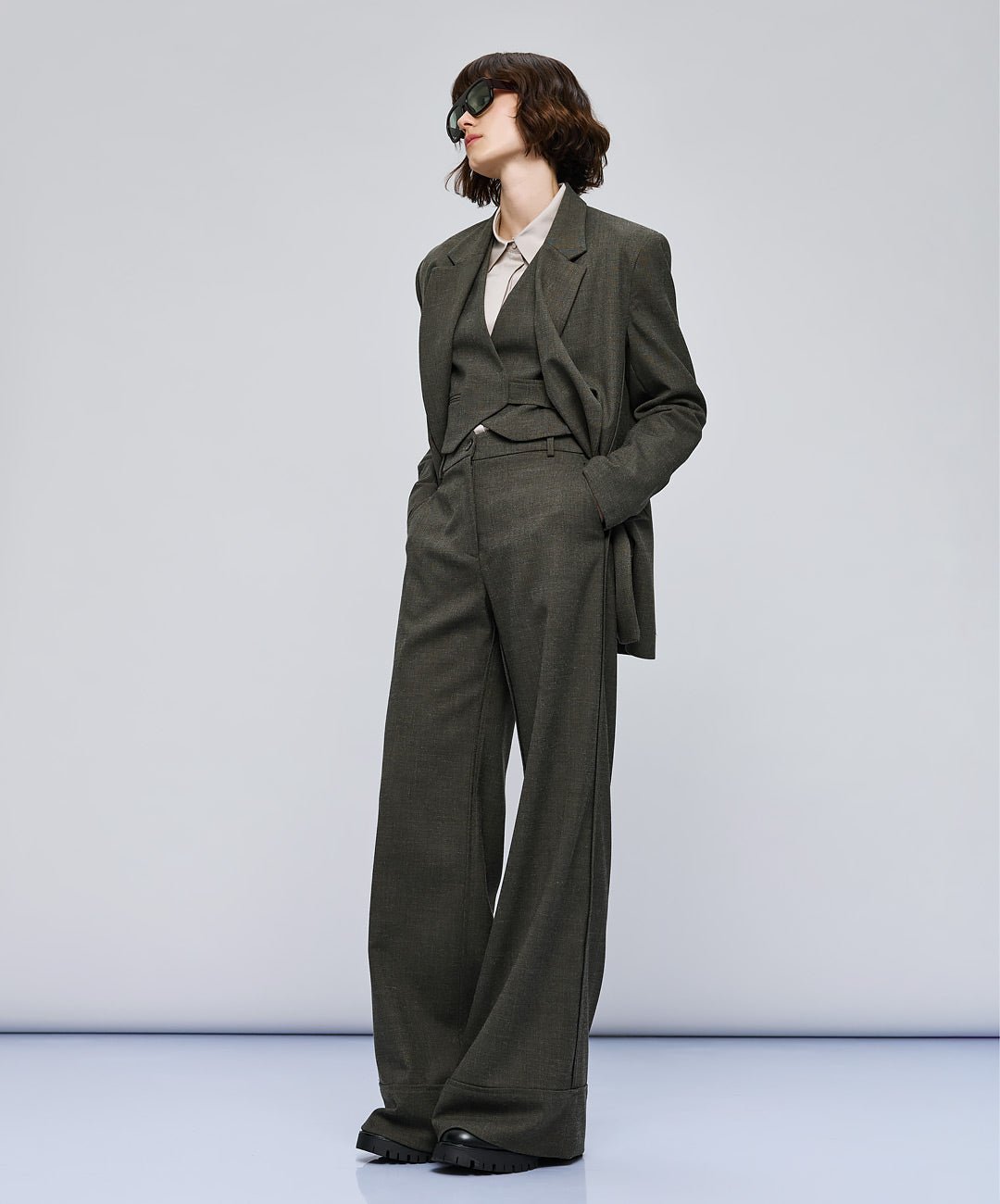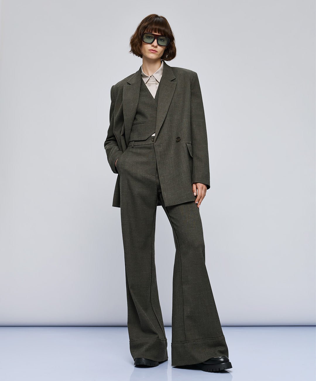 Φαρδύ ψηλόμεσο παντελόνι με ρεβέρ. Διαθέτει τσέπες στο πλάι και διακοσμητικές τσέπες με καπάκι πίσω. Συνδυάστε με το αντίστοιχο σακάκι από τη συλλογή μας για ξεχωριστές εμφανίσεις.
